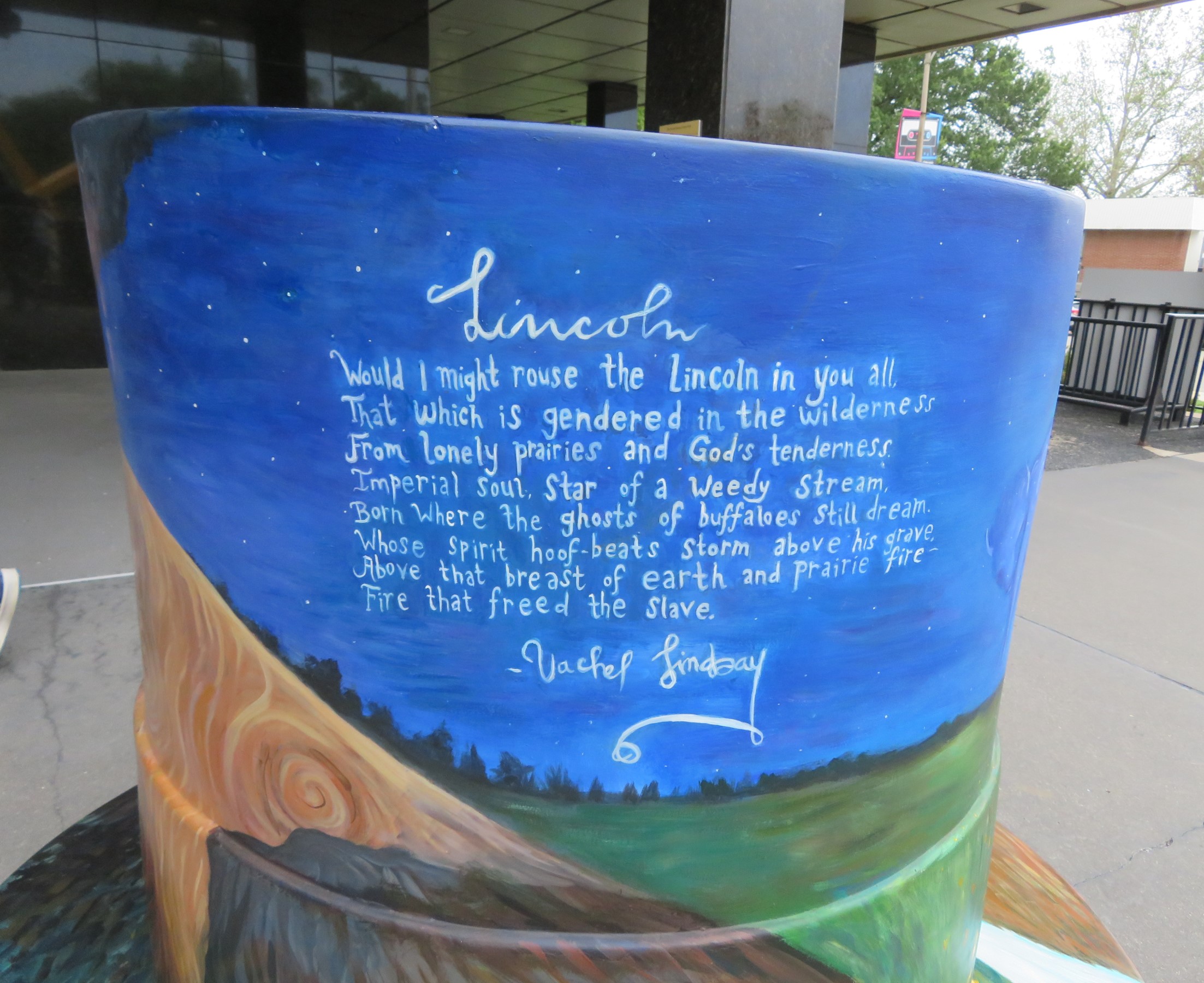 Top hat with the full text of “Lincoln” by Springfield poet Vachel Lindsay.