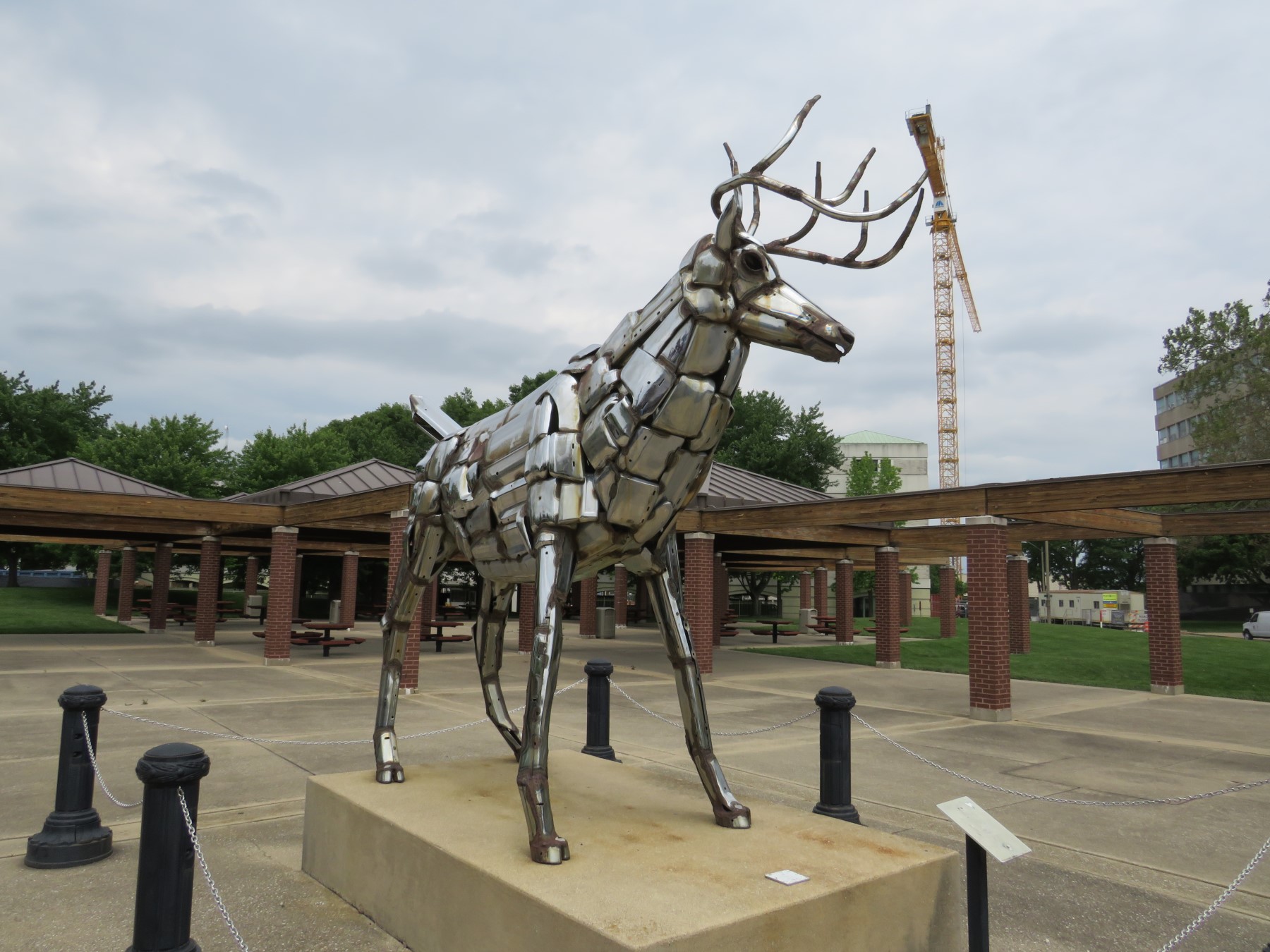 White-Tailed Deer, a 1994 sculpture by John Kearney made of chrome bumpers.