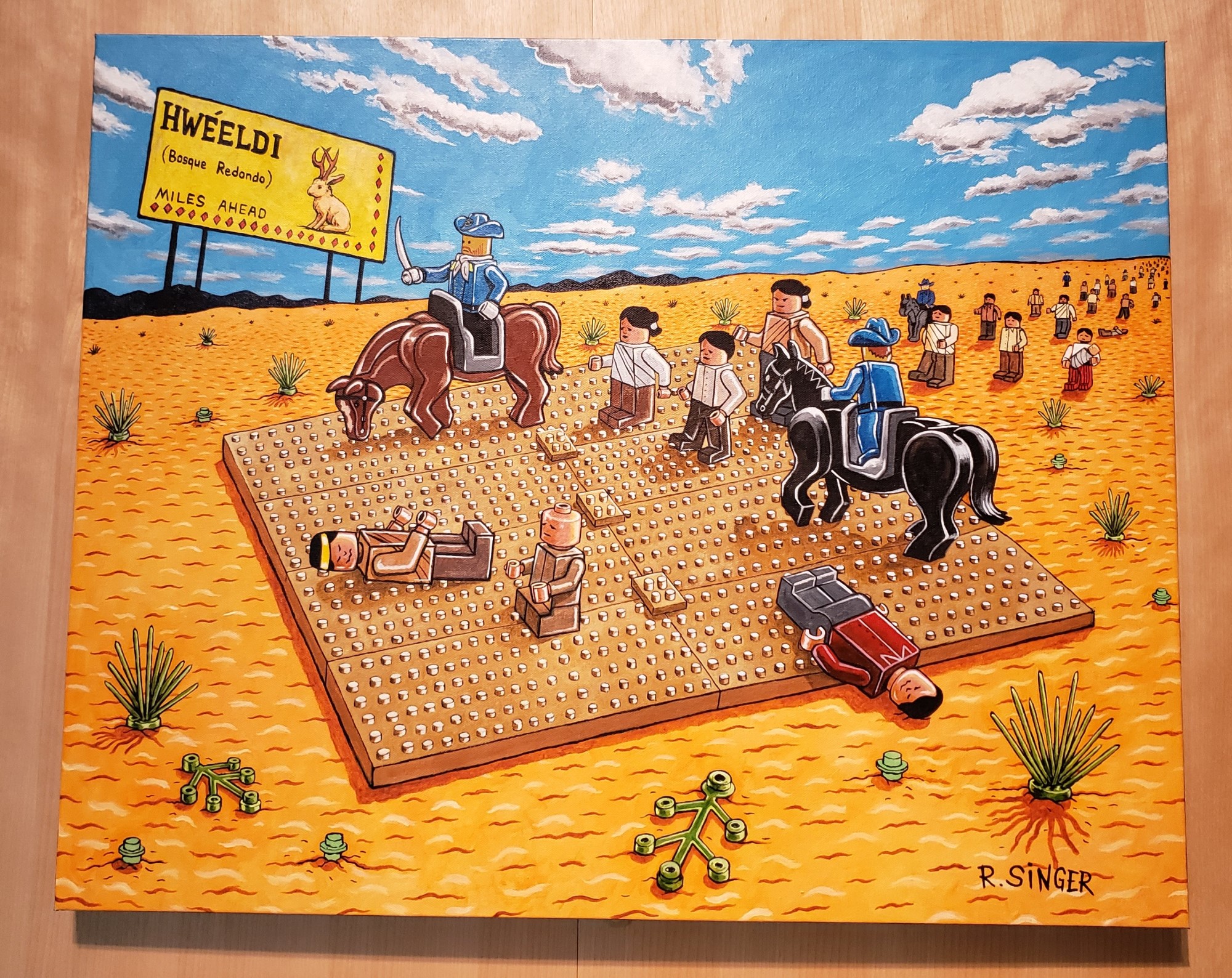 The Eiteljorg’s permanent collections are a mix of paintings, sculptures, and other works from or inspired by the Old West. I’d thought the preponderance would be indigenous/Native American artists and depictions, but their comprehensive mission statement encompasses the American West in toto — hence significant space also devoted to cowboys real and idealized, as well as all those unpopulated landscapes on the other side of the Mississippi. I tried not to carry in too many preconceptions or expectations as a viewer who’s enjoyed the wave of Native voices in recent movies and shows such as Reservation Dogs, Dark Winds, Marvel’s Echo, Netflix’s Rez Ball, Fancy Dance, the film-festival entrant Jazzy, and the mostly forgotten Rutherford Falls…but I may have carried in a few anyway.
