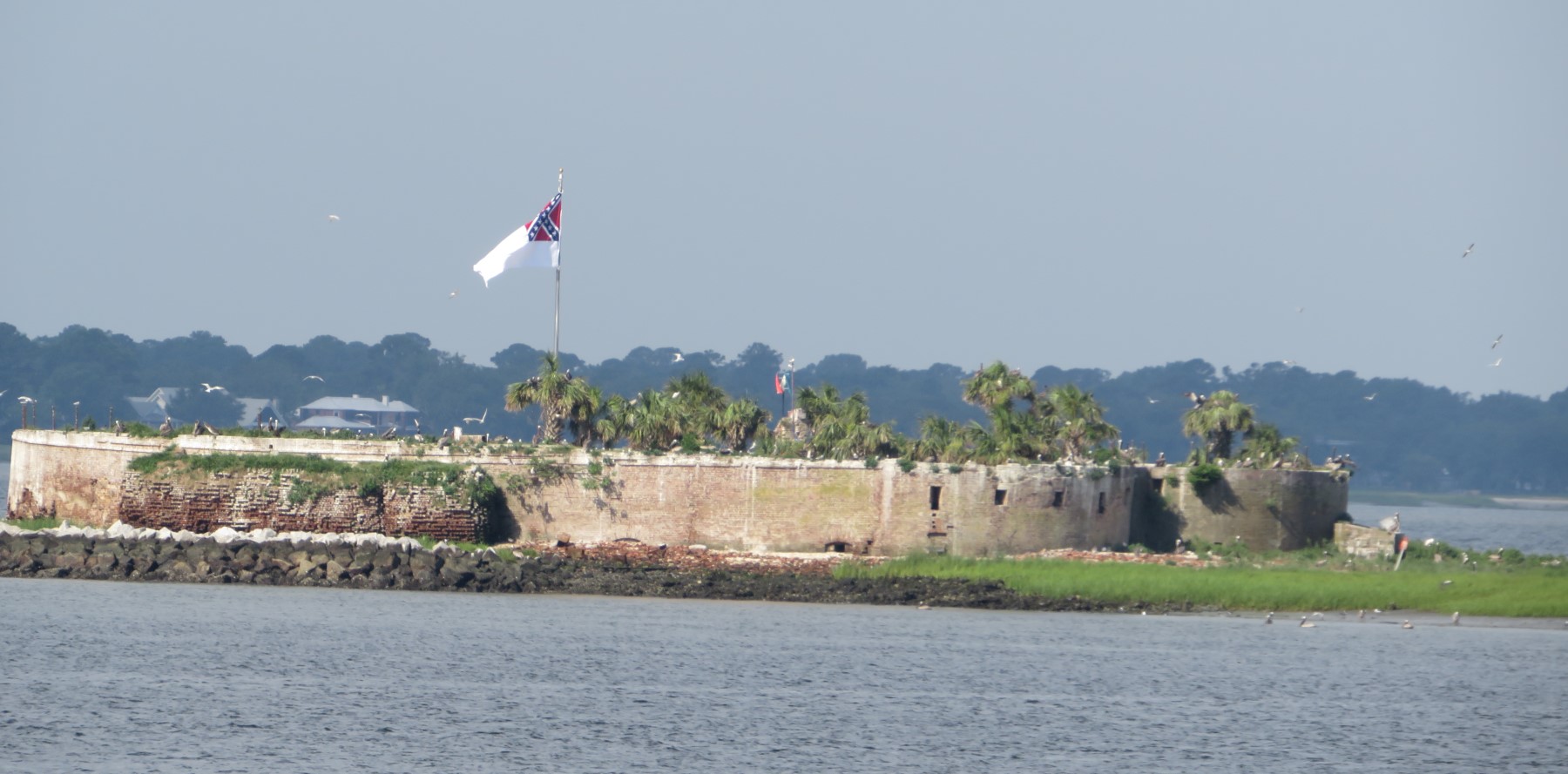 Not Fort Sumter, but Castle Pinckney on nearby Shute’s Folly, owned by the Sons of Confederate Veterans. Public tours aren’t offered, but the flag is swapped out from time to time.