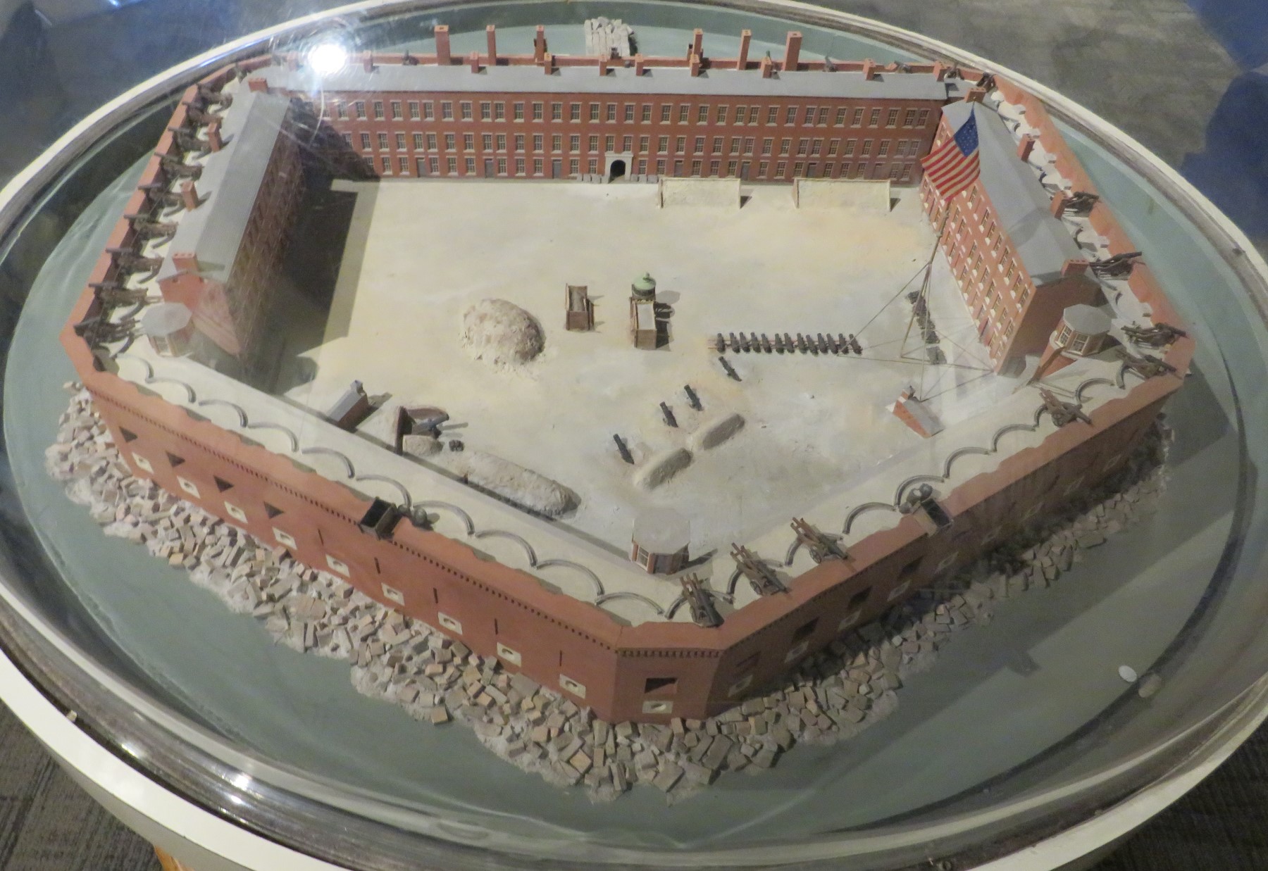 A diorama of Fort Sumter’s full design, had it ever been finished and left unharmed as planned, including barracks and hospital that do not exist today.