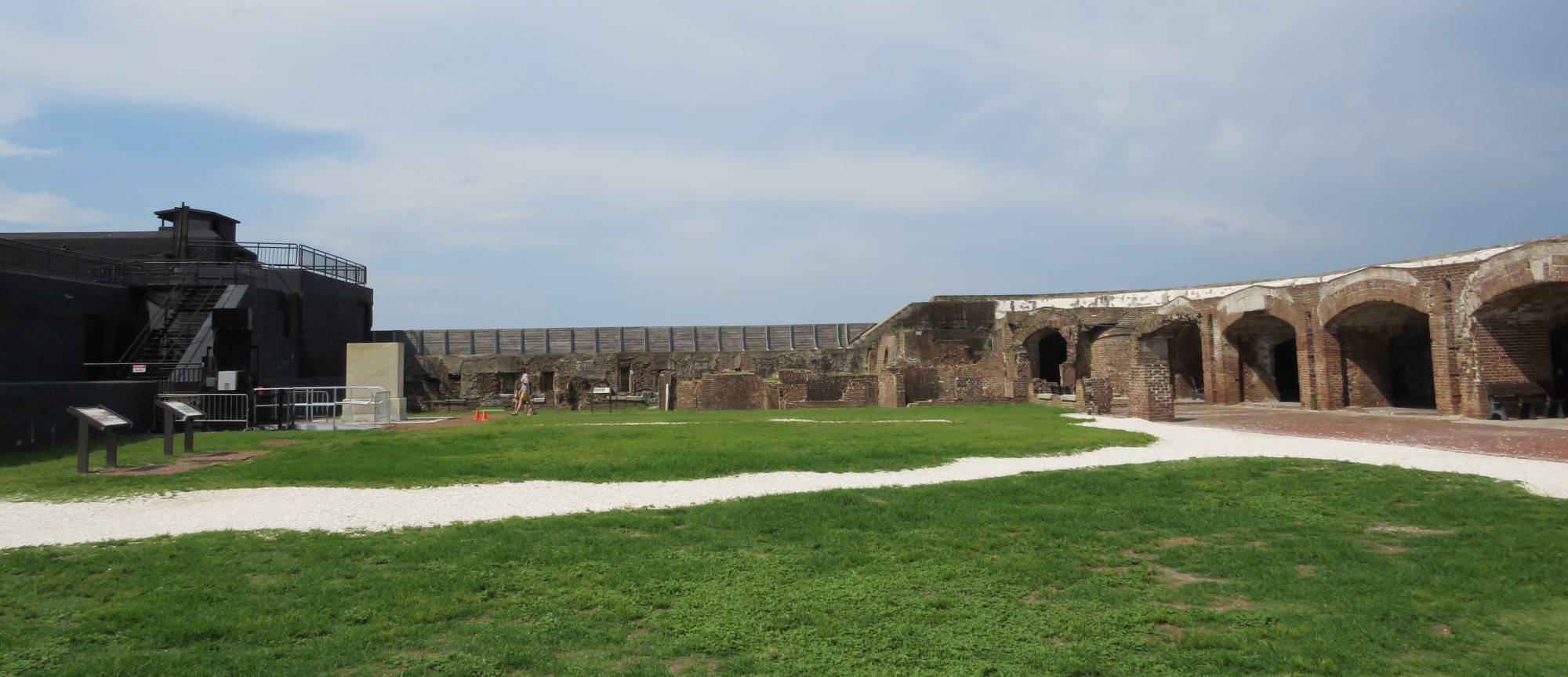 (As of 2023 its historical parade ground was just four feet above sea level. Flooding becomes an issue with any confluence of high tides and heavy rainfalls. Fortunately this was a sunny day in the immediate vicinity; storm clouds to the southeast kept their distance during our visit and for the rest of the day.)