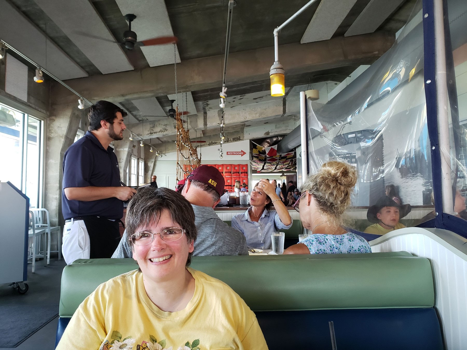 For lunch we did an extremely rare thing: we tried a restaurant suggested by our hotel’s staff. At their word we got reservations at Fleet Landing, not far down the harbor from our ferry launch point. The parking fee at the next-door lot was half-price if we’d planned to eat there — no proof of reservation required, honor system in full effect and the chap on duty said we could keep the car there all day if we’d like. Bonus points for the Southern hospitality.