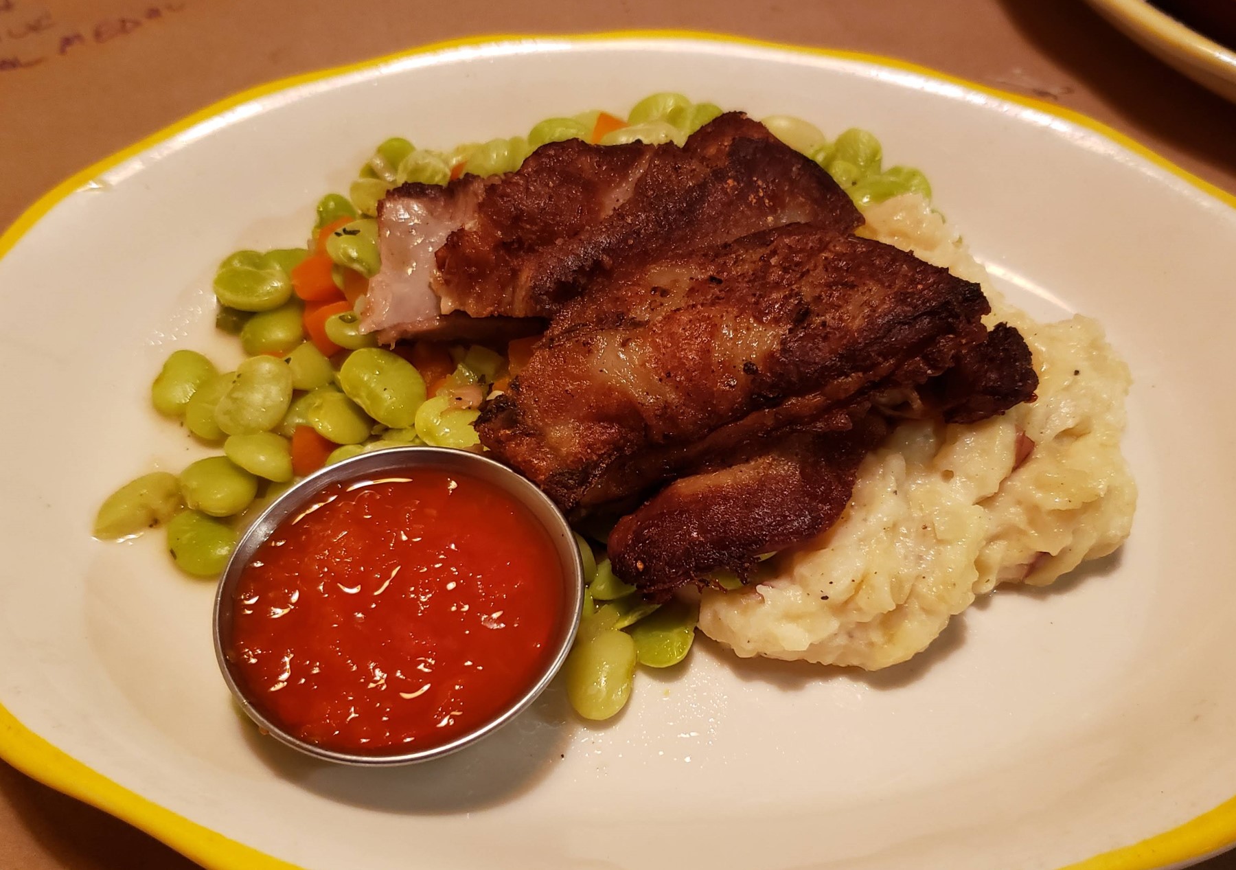 Farther down Savannah Highway in the opposite direction from Toast!, dinner was at The Glass Onion, with a self-described focus on “original Southern home-grown, locally focused, all natural” fare. Their co-owner/Executive Chef is a Birmingham native who trained in various locales over the years before relocating post-Katrina to the South Carolina Lowcountry, where The Glass Onion’s been since 2007. So no, they’re totally unrelated and predate the most excellent Rian Johnson movie by a good span, but they earn Great Minds Think Alike bonus points anyway.