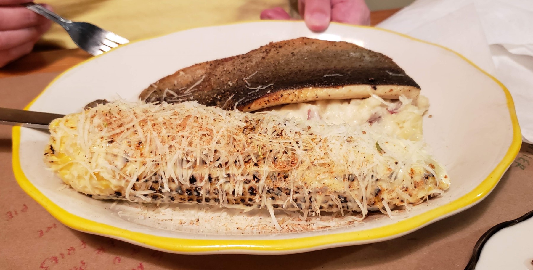 After Sumter and our walk up and down Riverfront Park, we arrived ten minutes early for our reservation, but were escorted to a table right away despite the long line outside. We were seated near an open doorway that let in a nonstop breeze off the nearby waters. The place was hopping; the crowd ambiance drowned out whatever Muzak was playing.
