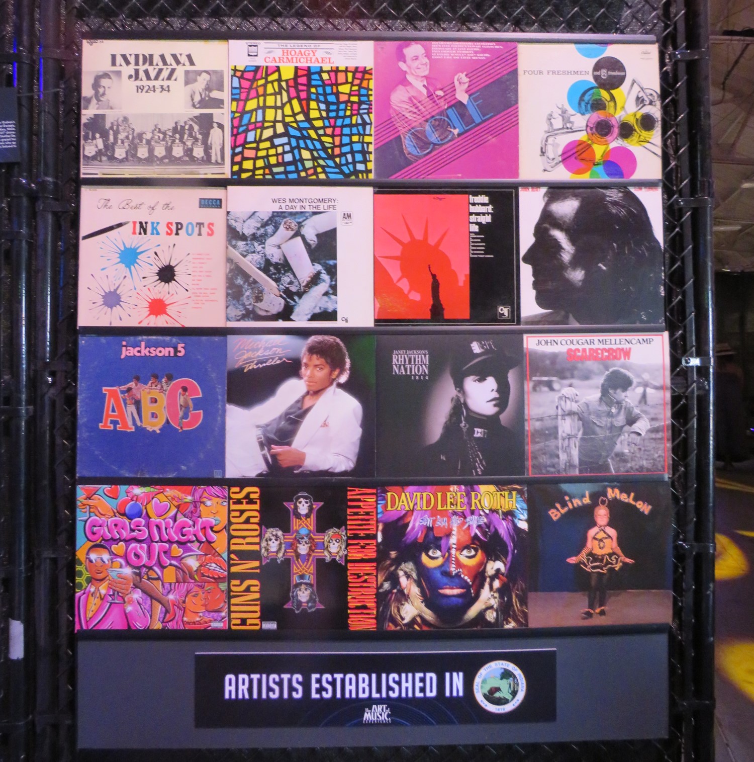 The most noticeable expression of this theme was the fairground P.A. system, which they turned into an ’80s radio station (alas, no DJ) that was a pleasant addition to our surroundings whenever it wasn’t drowned out by the growls of the shuttle tractors riding their circular routes. Also supporting this theme, the Harvest Pavilion was devoted to one large exhibition called “Vinyl Revival: The Art of Music Experience”, filled with tributes to the art of album covers curated in partnership with Indy CD & Vinyl, that stalwart record shop in Broad Ripple that I’ve visited maybe once ever, because I’m only in their neighborhood once every five years or so.