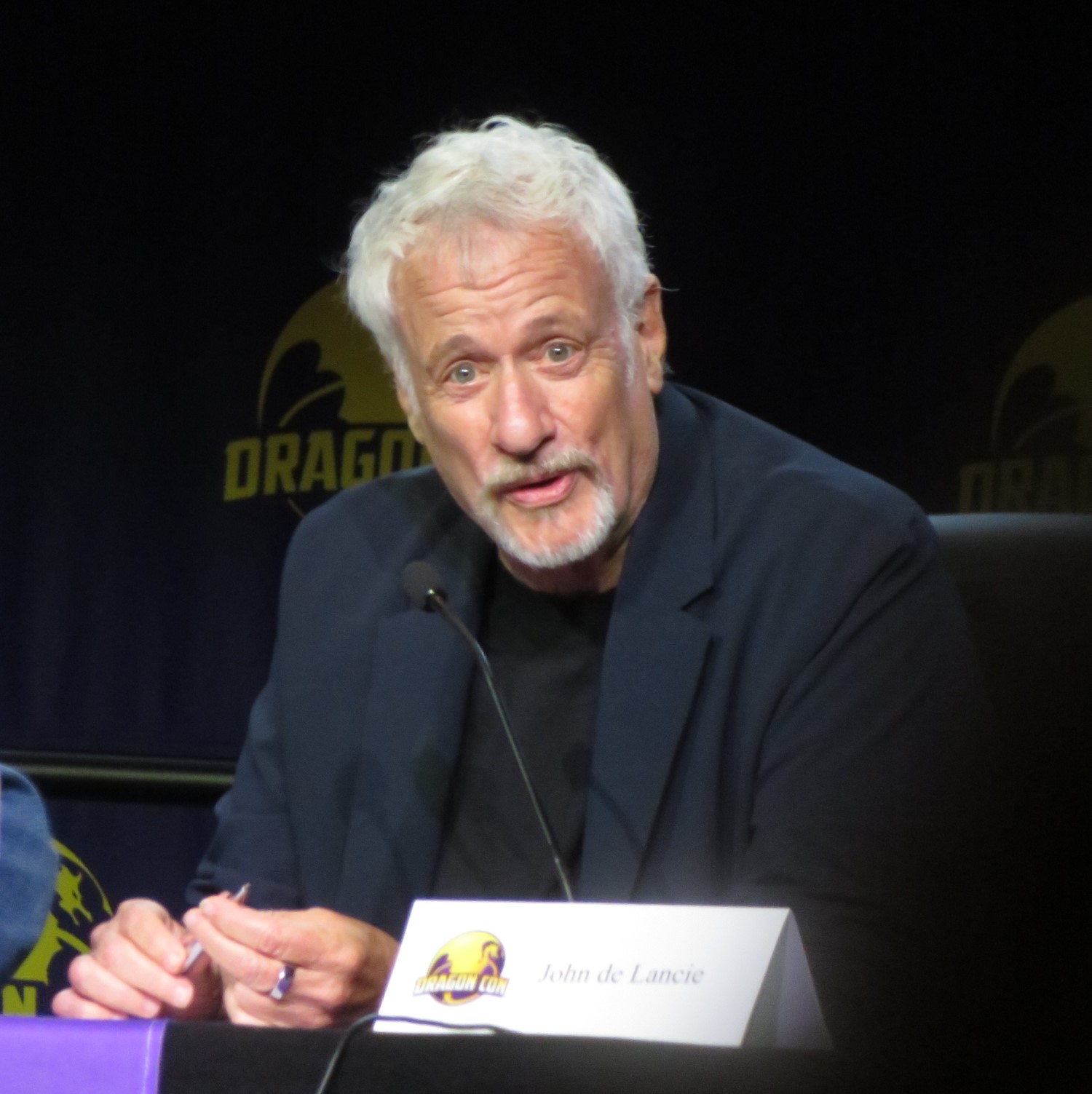 Longtime MCC readers know one of Anne’s biggest rules: if John de Lancie is a guest at a con we’re attending, it’s time for another photo. The omniscient, omnipotent Q is her all-time favorite fictional character, and she’s had fun tracking down his other works as well, from youthful ’70s TV cameos to supporting roles in films of wildly varying quality.