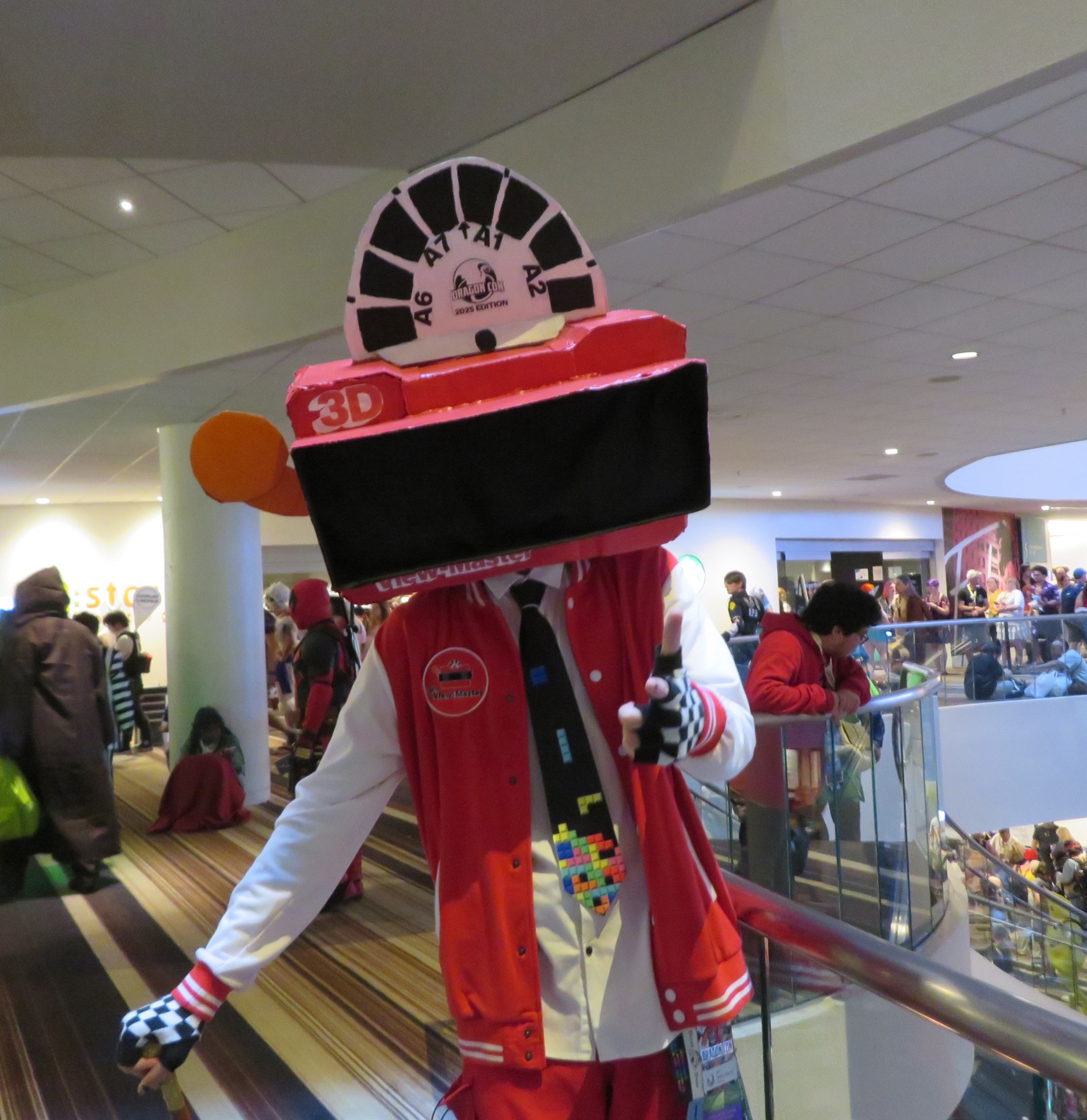 …but in the meantime: more cosplay pics! Except where noted, the following pics were taken Saturday between 11:30 a.m. (when the final marchers in the annual cosplay parade reached the end of the route) and 7:00 p.m., when we dragged ourselves down the Marriott’s fire-exit stairs to circumvent the out-of-order escalator and take our leave of the festivities. Same as last time, we snapped a fraction of a fraction of a fraction of a fraction of the total talents on display, as mere amateur appreciators who like sharing such sights and wonders to You, The Viewers At Home. Sorry we missed thousands more! We just kept doing other stuff! And we’re too old to keep up this pace for 72 straight hours!