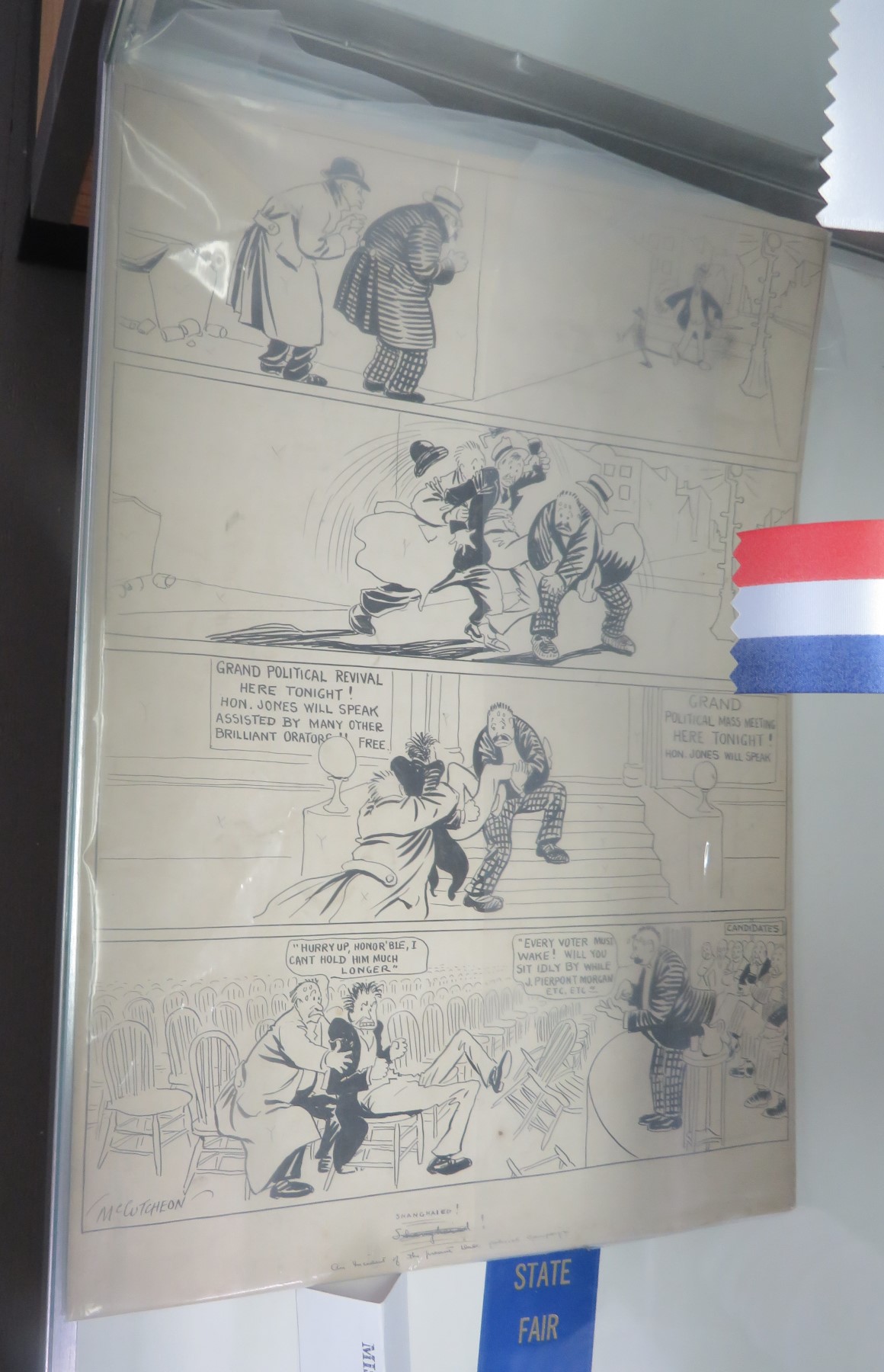 The most surprising find: a page of original art by John T. McCutcheon (1870-1949), a Pulitzer-winning political cartoonist who worked for the Chicago Tribune for over forty years.