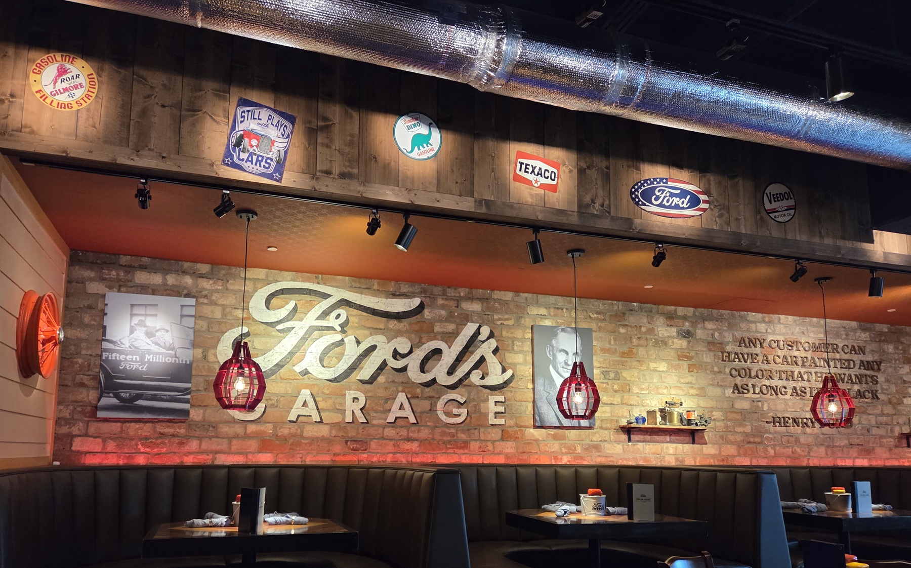 Founded in 2012, the original Ford’s Garage opened in Fort Myers, Florida, less than a mile from Henry Ford’s winter home! Today, as an official licensee of the Ford Motor Company, we pay tribute to America’s most iconic automobile brand by offering a truly historic dining experience—right down to our nostalgic auto shop uniforms and the hand-hammered copper bar top at each of our locations.