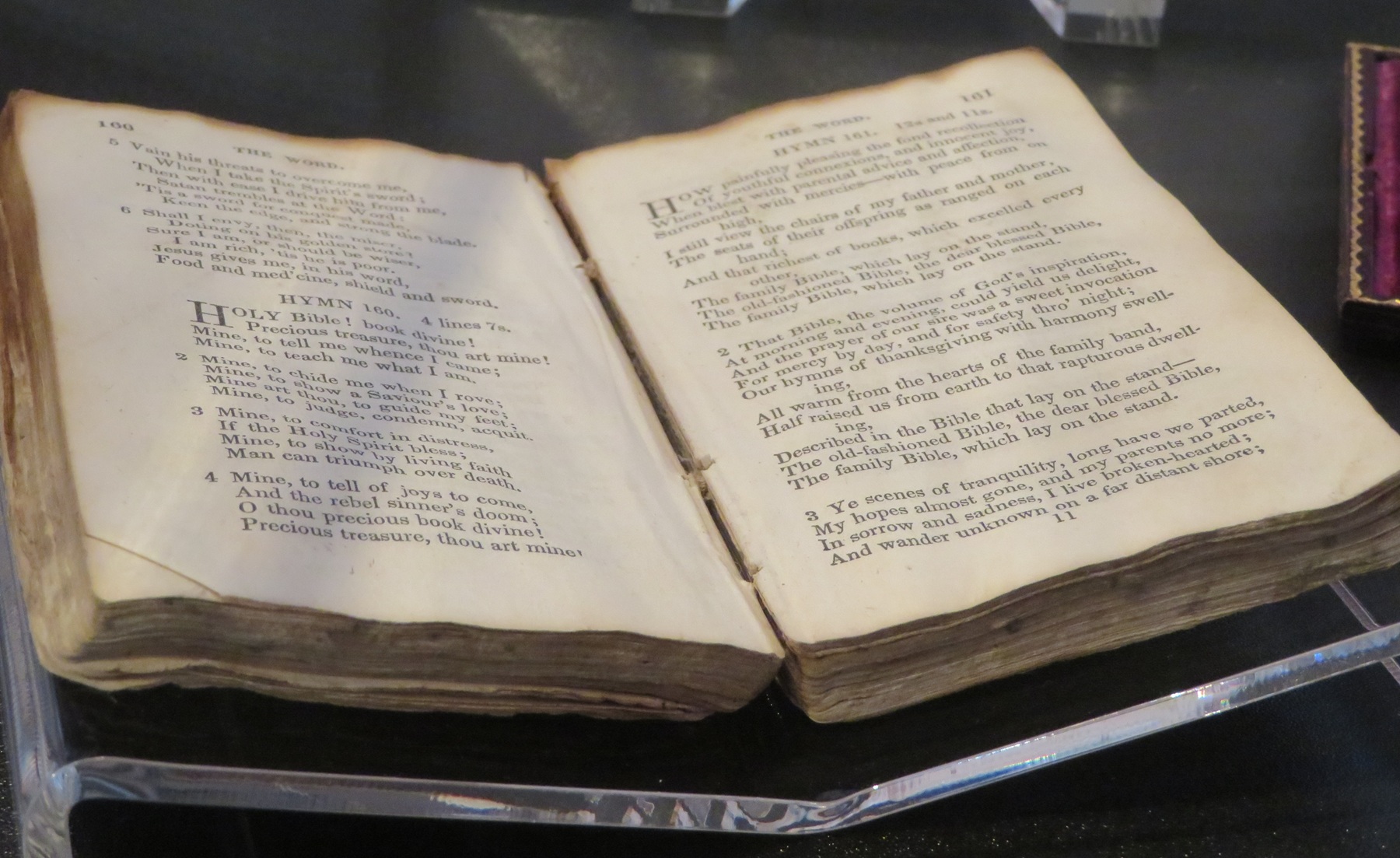 An old hymnal turned to “Holy Bible, Book Divine“.