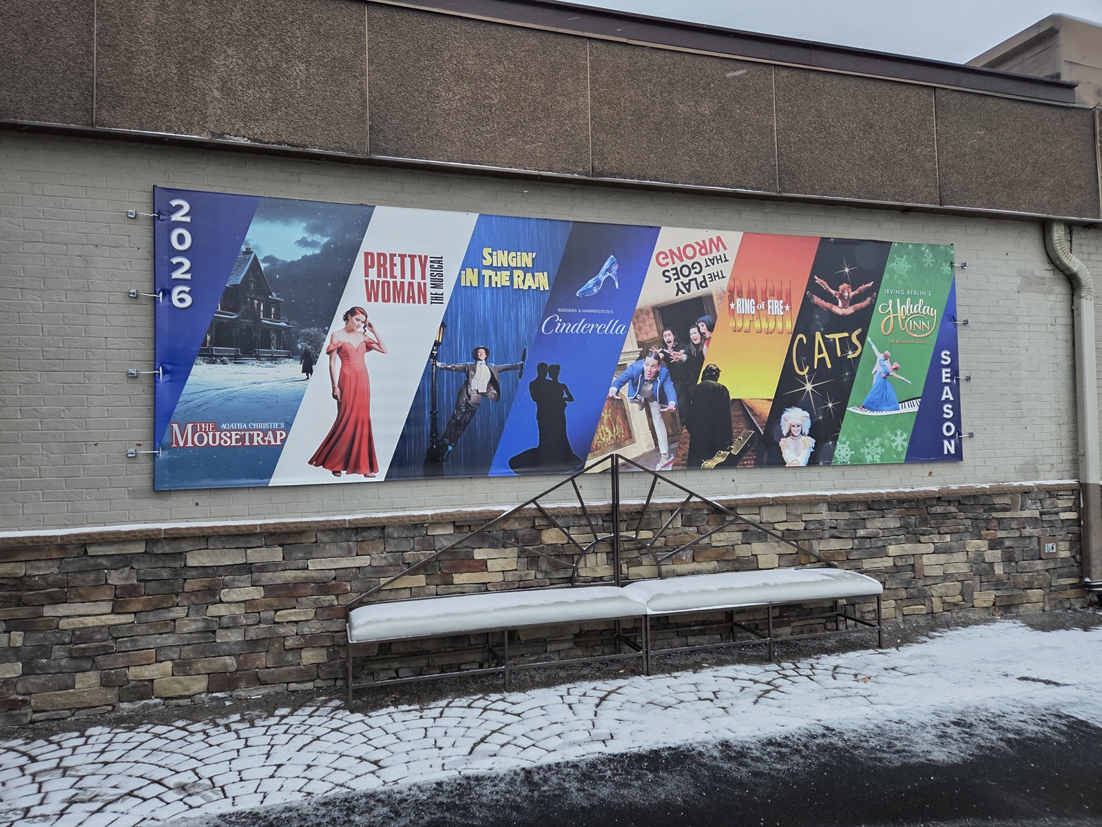Saturday night we tagged along with two of our tea-time companions for food ‘n’ art at Beef & Boards Dinner Theatre, an Indianapolis institution for live stage performance since 1973. My wife Anne and I were born, raised, and largely content here in Indy all life long, but neither of us had braked for Beef & Boards before. The four of us made plans months in advance and stuck to them, even when local and national news warned us The Snowstorm of the Century had been scheduled for this very same weekend. The theater understandably canceled their Sunday performances, but as for Saturday, they declared the show must go on.