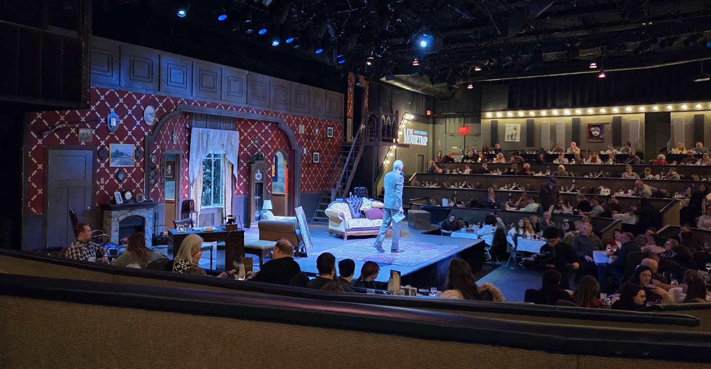 Dinner theater is an extremely uncommon experience for us in general. I do recall one 1990s Trek convention that ended with an absolutely wonderful event in which a ticketed dinner was followed by special guests Alexander Siddig and Andrew J. Robinson performing a one-act, two-man show they’d written themselves for their characters Dr. Julian Bashir and Elim Garak. So this Saturday might’ve been our second-ever night of dinner theater. It doesn’t help that in pop culture at-large, “dinner theater” tends to be treated as a pejorative, usually with a locational modifier for further diminution — “Branson dinner theater”, “nursing-home dinner theater”, other snark like that.