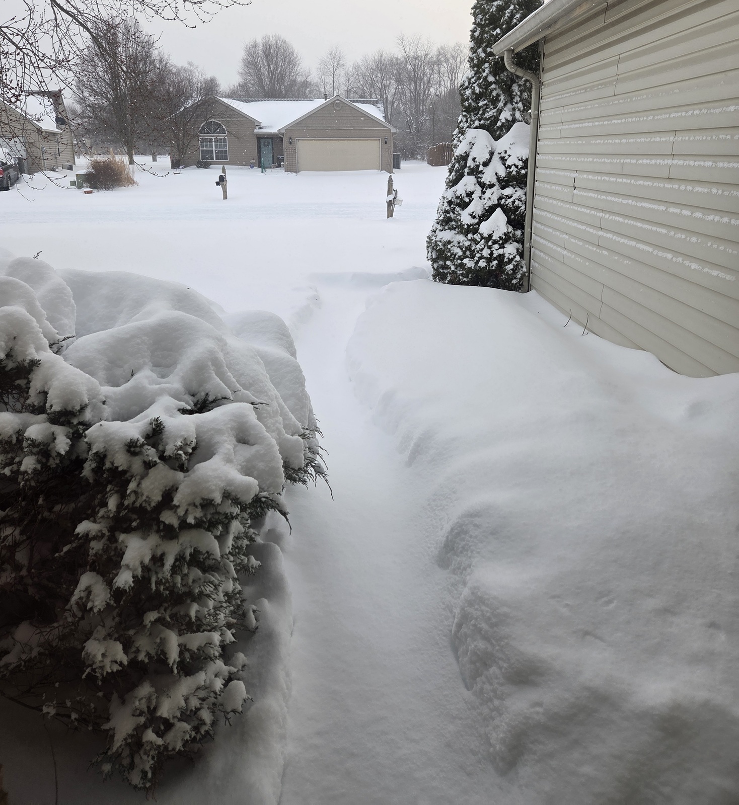 Around 12:30 I shoveled our front walk in vain, as proven ’round 5 p.m.