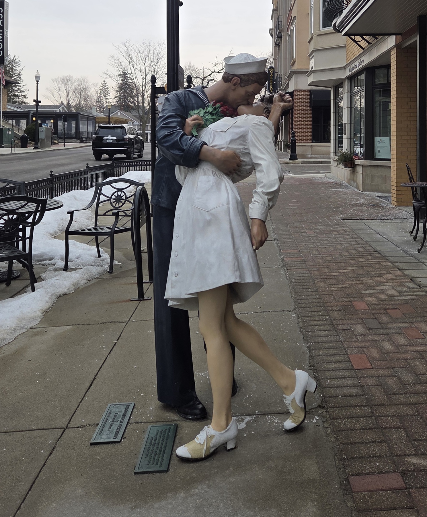 We figured that’d be the end of our expedition and we’d be heading straight home to binge some King of the Hill or whatever. Au contraire: Goodness Gracious is in the heart of the Carmel Arts & Design District, which overflows with each and every item in its name. Temperatures had risen into the 40s and the two-week-old suffocating snowstorm blanket had mostly melted away throughout the week. This happy couple took advantage and took ourselves a nice stroll to walk off those breakfast carbs.