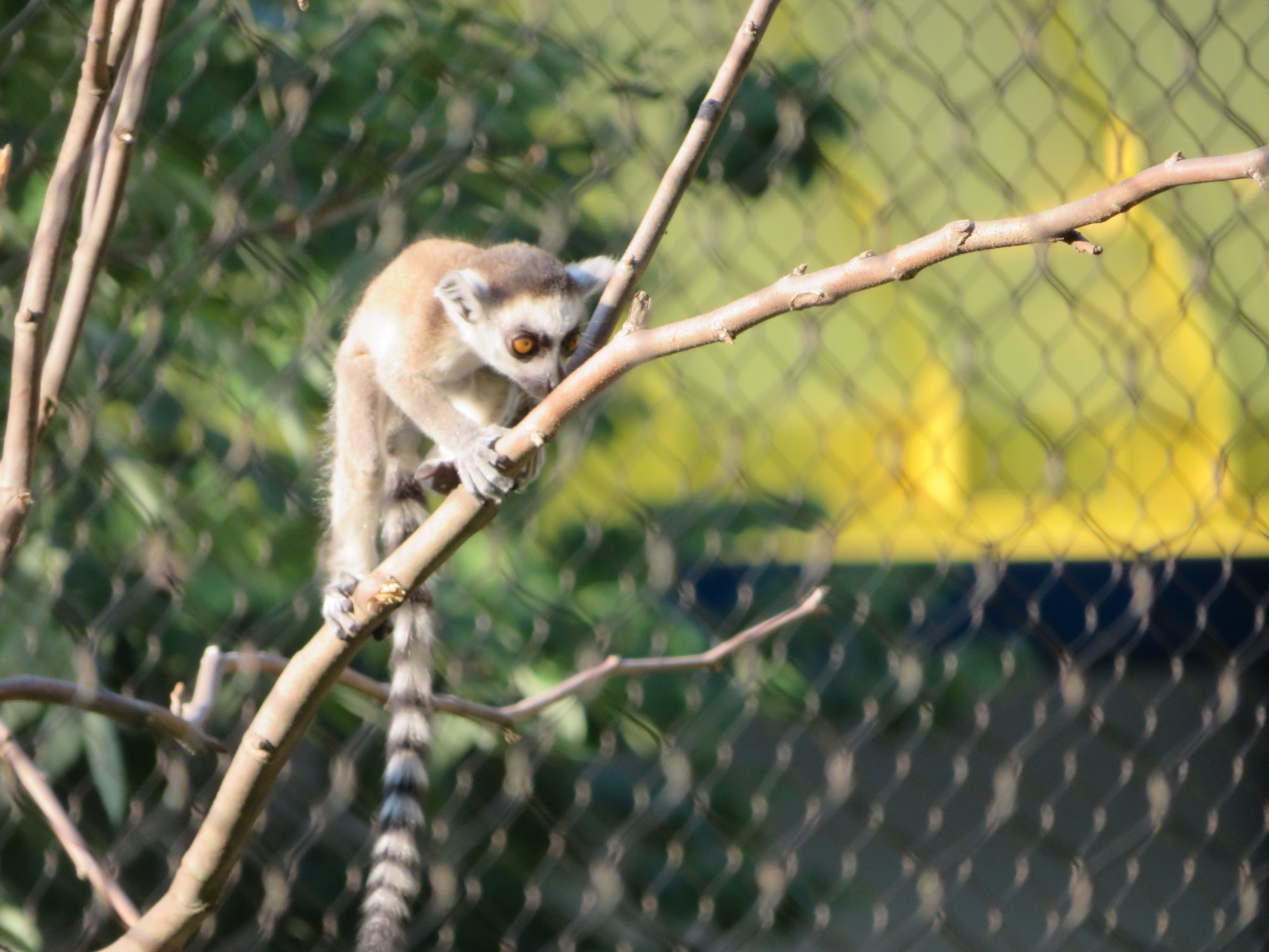 A ring-tailed lemur trying really hard to concentrate despite distracting humans.