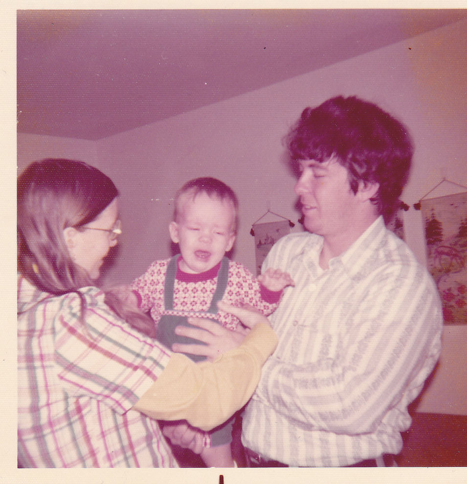 Me at seven months old. My grandma’s caption written on the back of the photo begins, “Mommie had to take him. Daddy was in too big a hurry + didn’t give him time to look at him first.”