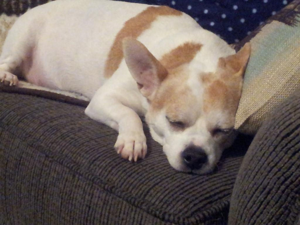 Lucky in repose atop the only IKEA product in our entire house. Thankfully we were able to get his giant urine stain out of it.