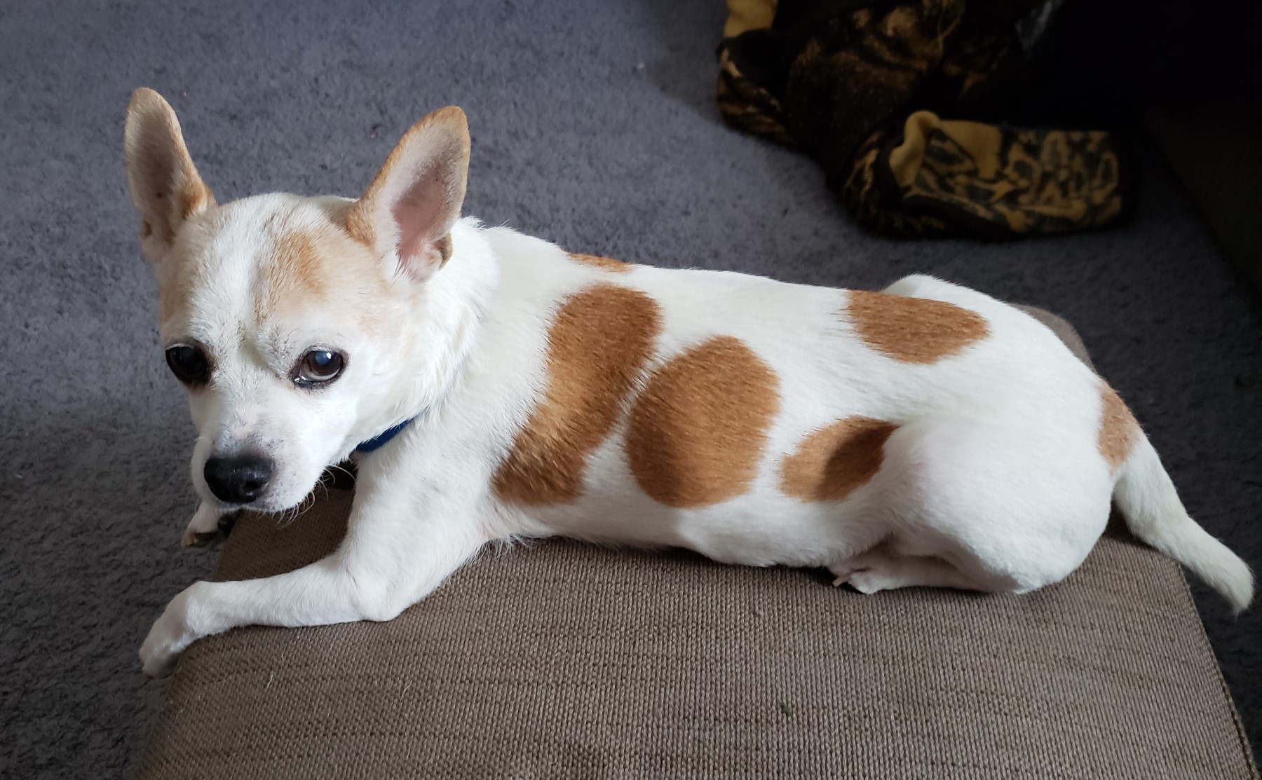 Never thought I’d see the day when our dog Lucky would find himself dressed like a Sno-Cone, but here we are.