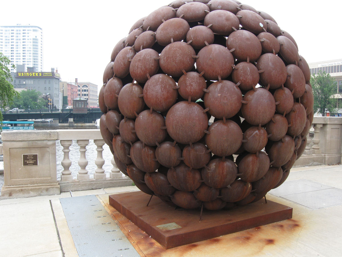 The Milwaukee Riverwalk winds through the center of their downtown and runs adjacent to restaurants, nightclubs, residences, and blue- and white-collar businesses alike. Our last two chapters spotlighted the artwork along either riverbank that lends this tourist stop some honorary museum cred. We conclude our Milwaukee Riverwalk trilogy with a look at other assorted sights along the path, a mix of modern touches and industrial chic.