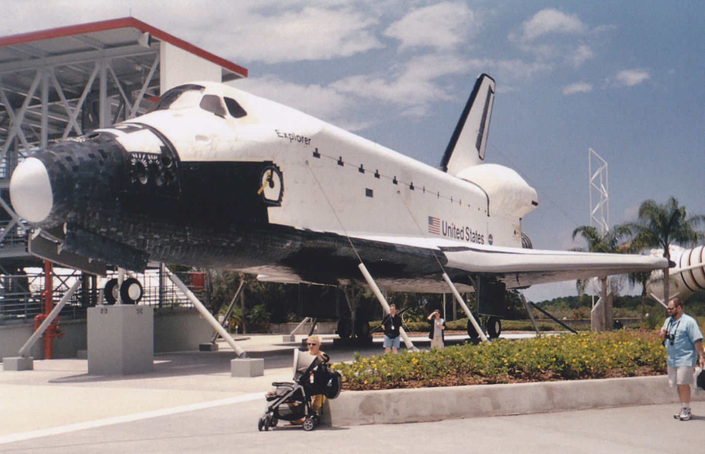 As of 2007 the Space Shuttle Explorer was docked in Florida, and we were there. Extra points to experienced Highlights readers who can spot me and my son up there.