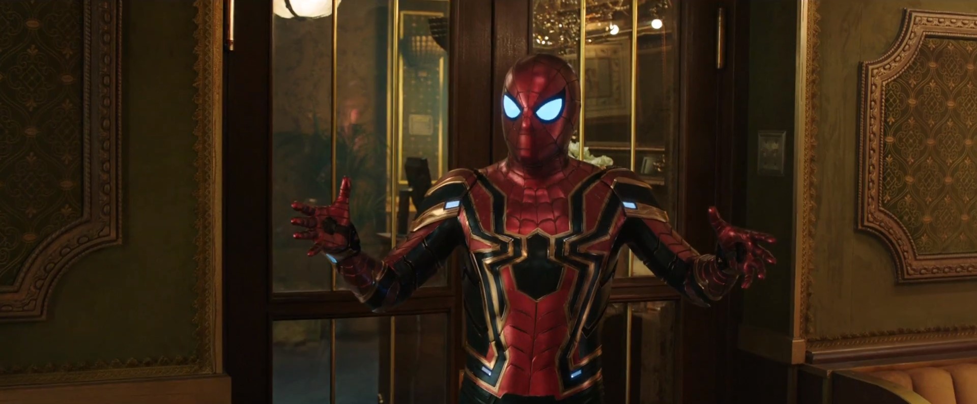 On another level, anyone with zero foreknowledge of the antagonist Mysterio and his motifs from old Spidey-comics will want to skip the regular “Meaning or EXPLOSIONS?” section because, frankly, it was kind of boring to ruminate on that aspect spoiler-free. I’m not revealing all his secrets or recapping his scenes shot-for-shot, but…well, there’s stuff that spoke to me.