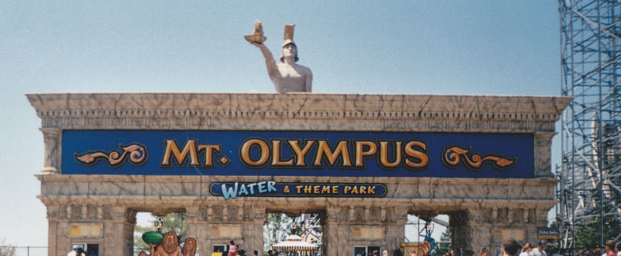 Our next stop after Alligator Alley had been preplanned months in advance. Our only previous water-park encounter was the single time we remembered to bring swimsuits to Kings Island, but didn’t gidet around to putting them on till two hours before closing time. We’d enjoyed what little we could in such a short timespan, but we yearned to enjoy a water park without hurrying. Besides, we’d have to be complete fuddy-duddies not to visit the self-styled Water Park Capital of the World and not visit at least one lousy water park. Our choice was an ancient Greco-Roman theme park called Mt. Olympus. For my son, it seemed a winning combination. He likes pools. He likes amusement parks. He likes Greek mythology. (He and I were among the half-dozen people in America who got a kick out of Disney’s Hercules.) All three combined should’ve been a winning ticket.