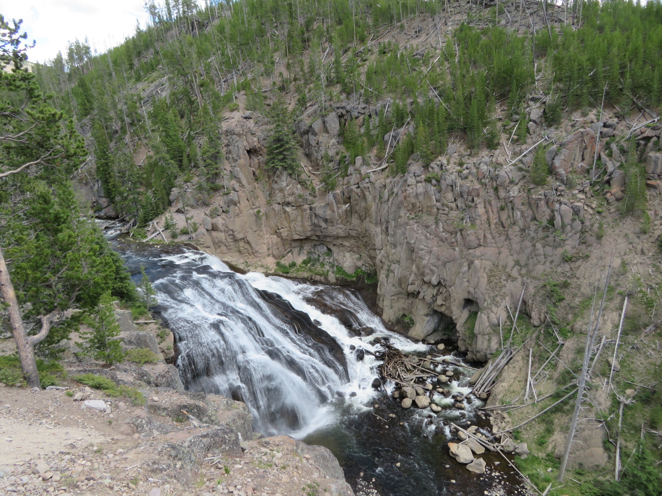 DAY FIVE: Jazz hands in front of Roaring Mountain in Yellowstone National Park.